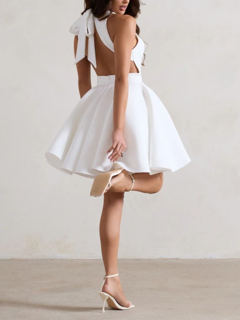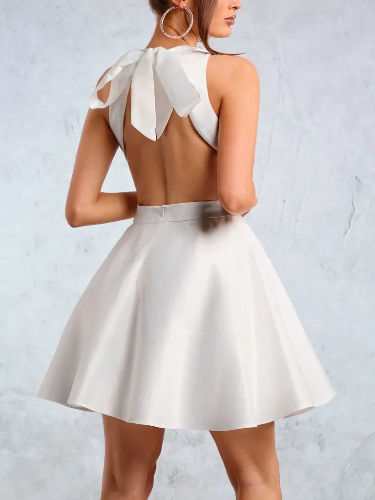 Escote halter y espalda con detalle de moño