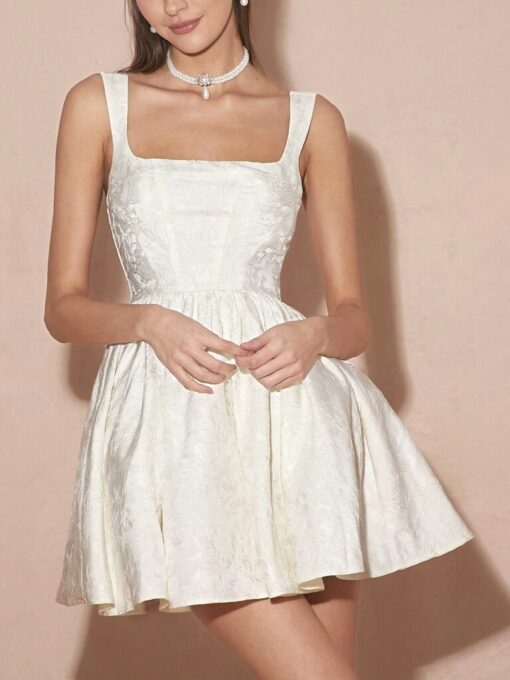 Escote cuadrado y tela con detalles de brocato